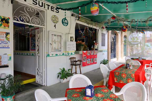 Our reservation was at 7 PM. But even by that time, the entrance to the building was deserted and with no signage above the closed doors, it almost appeared as if the place was closed. However, once inside the visitor is greeted with a high ceiling and walls leading their eyes to a large welcoming fireplace clad in a wood-finish metal façade.