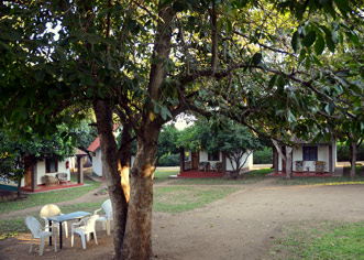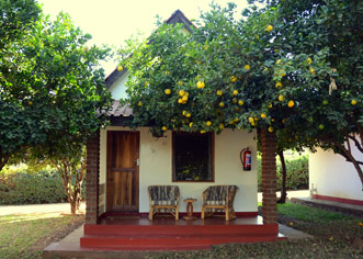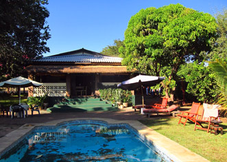 Andrew from, “The Green Tree Lodge” (http://www.greentreelodgezambia.com/), was there to pick us up just as promised. He had us at the lodge and into our our private bungalow (the “Guineafowl Chalet”) in what seemed to be only minutes. The Green Tree Lodge is a quaint little fenced and gated compound off Kombe Road. It is comprised of five “Chalets”, a main house with attached veranda where he dining/living room/bar area for guests is located, a small swimming pool and deck area, and several other service buildings. The grounds are sprinkled with a variety of different fruit-bearing trees and has it’s own resident critters – a pair of Guineafowl hens, a number of pidgeons, and a pair of rabbits. All they’re missing is a couple of people-friendly medium-sized pooches to welcome the guests. The lodge is owned and operated by Andrew and Vickie. Peter is the owner/groundskeeper/bellhop/chef/all-around do-it-all. It’s a quiet little oasis which seems to be quite popular with ex-pats and other non-Zambians who are travelling through Livingstone. The lodge serves breakfasts, lunches, and dinners at very reasonable prices… and the food is extremely well-prepared in a home-cooked, non-pretentious, but professional way. The chalets all feature either twins beds or a queen, a small TV, a bar fridge, air conditioning, a ceiling fan, an ensuite with shower, and a small front porch with two wicker chairs. The only disappointment is the lack of advertised WiFi. All-in-all, I would whole-heartedly give a very positive recommendation for this place. Anyone starting their African adventure in Livingstone would do well to stay at The Green Tree Lodge; it’s a great place to relax and ease into the whole African experience… and Andrew has a wealth of information and recommendations to impart.