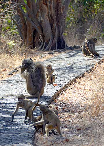 After viewing the falls from up-close-and-drippy-wet, we walked along the “Photography Trail” for some long-shots. On the way back to the parking lot, we ran into a congress (rather appropriate isn’t it?) of Baboons. They were “wild” critters but they were so habituated to the presence of humans that they barely looked at us while we photographed them.