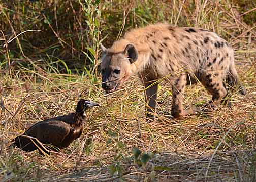 Up and ready to go before the sun is up, AGAIN; this is no way to treat a non-morning-person! We all pile into our Land Rover for our first game drive of the day. This took us throughout the section of the park adjacent to the main entrance. The highlights of the day were; some close encounters with Elephants, a family of Giraffes, a herd of Cape Buffalo, a day-time sighting of the ever elusive Leopard, and a Spotted Hyaena and White-headed Vultures fighting over the remains of the Cape Buffalo from last night. We also learned that the locals call the Guineafowl, “Suicide Chickens” for their habit of running away from cars by panicking and rushing straight down the road – hence, SPLAT: a Suicide Chicken.