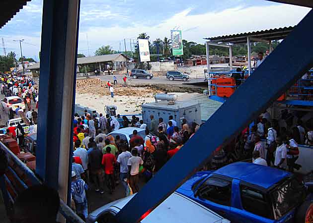 Eventually we made it to the Dar es Salaam cross-harbour ferry, where we were told to disembark and cross as foot passengers. Will and Ebron pulled Malaika into the vehicle line-up, while Brett ushered us through the foot passenger ticket booth. Little did we know this would be the last we saw of Will, Ebron, and Malaika for nearly two hours.