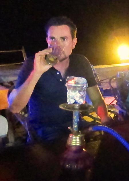 After dinner, Brett took us in search of the elusive hookah. We settled in a bar down the beach and a local rastaman / entrepreneur named Captain Hussein procured a hookah pipe and shisha for us. When we asked the waiter if we could smoke the hookah in his bar, he simply stated “hakuna matata” – no problem.