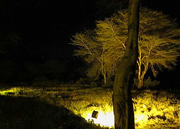 The lounge’s outdoor patio looks out over the marsh land, and is illuminated by flood lights, allowing guests to view animals wandering nearby.