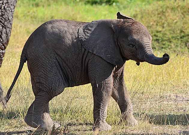 There are about 800 elephants living in the park; we saw most of them today. We ran across a herd of elephants crossing the road with several very young calves and one very large, very old bull who is missing a tusk – hence our nickname for him: One-Tusk.  Patrick estimated that he is close to 70 years old and nearing the natural end of his life. Elephants go through three full sets of teeth during their lives. When the last set falls out, the elephant can no longer eat and wanders away to die. Patrick explained that losing a tusk is an outward sign of extreme old age.