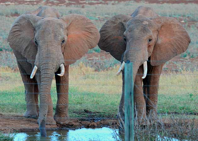 We did the usual game drive in the late afternoon. We returned to our room at the Ashnil Aruba Lodge (http://www.ashnilhotels.com/aruba/) in the early dusk, and imagine our delight when we opened the door to our room, and saw two bachelor elephants at the watering hole 75 feet from our verandah. We enjoyed their company while they drank their fill of water. Eventually they turned in the fading light and wandered off into the savanna night.