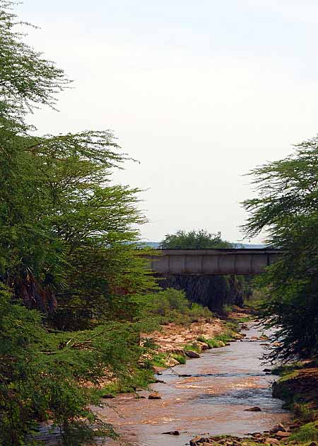 During the journey, we came upon the Tsavo River and the railway bridge made famous by the two man-eating Lions, the “Ghost” and the “Darkness”. The maneless male Lions killed and ate upwards of three dozen people during the building of the Mombassa-Uganda railway. http://en.wikipedia.org/wiki/Tsavo_maneaters