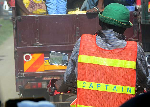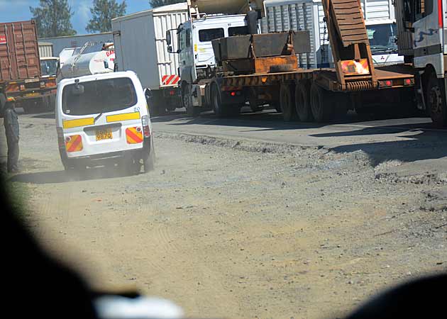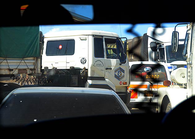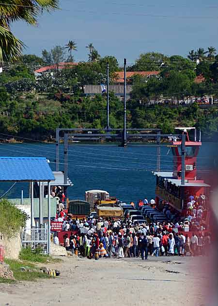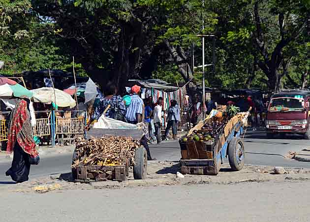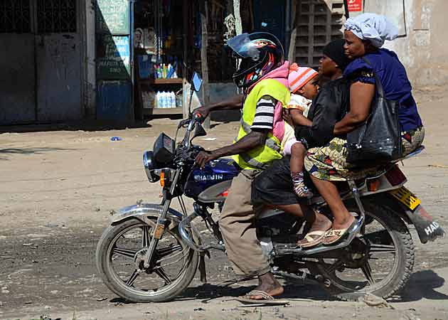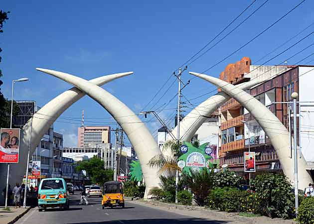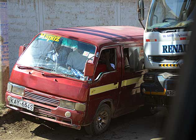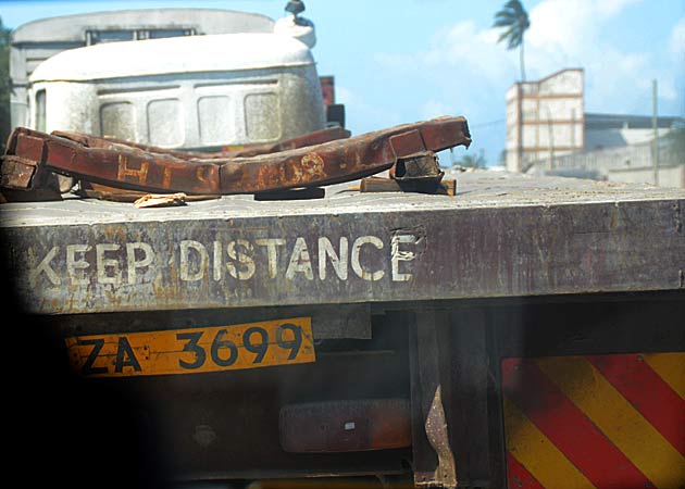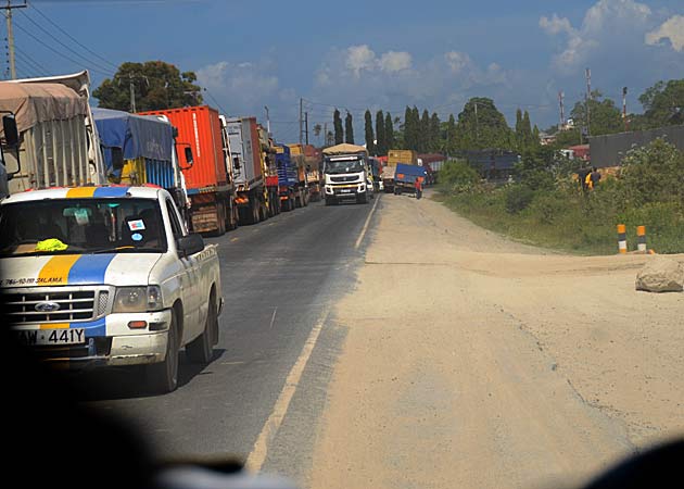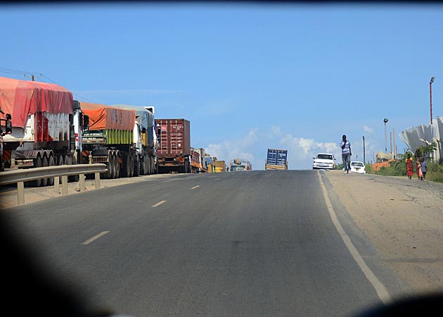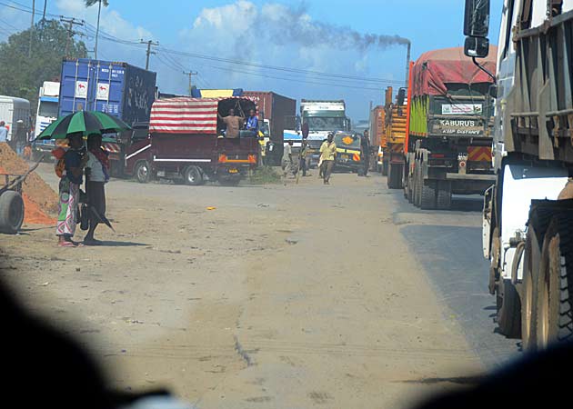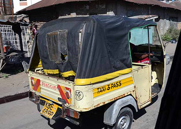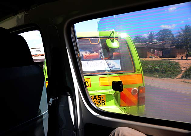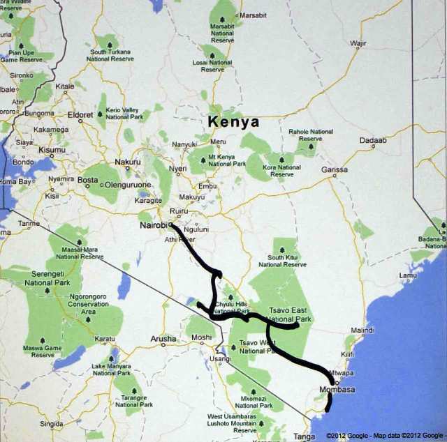 The Great Mombassa Safari: ah, Mombassa… reminds us very much of Dar es Salaam… same, same but different. We drove headlong into the same brick wall of traffic that seems to signal the outskirts of just about every sizeable settlement in Africa. Fortunately, we had an expert urban-safari driver at the wheel and, bear in mind, they drive on the left side of the road over here. First, he crossed he drainage culvert that serves as the centre line, traversed the on-coming lanes, and proceeded against the flow on the opposing shoulder. Then he wove his way back across four lanes of traffic, ending up on “our” shoulder. He then battled his way around and past others doing the same and plodded through deep ruts and puddles of muddy water alongside the road for almost 7 kilometres (about 4 miles) before he could work his way past the gridlock. Roger commented that he has driven like that before, but never without lights and siren. If it hadn’t been for our driver, we would have been stuck in that traffic for hours (or days?).