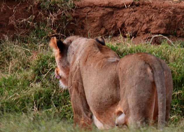 We wanted to stay and watch the stalk to its conclusion but it might have gone on for hours. Unfortunately, the Kenyan Wildlife Service (KWS) was also on scene and checking everyone’s park entry time-stamps. The visitor-entry fee is only valid for 24 hours, after that, a substantial fine is incurred. We had entered the park yesterday morning and were rapidly running out of time. Patrick started the truck with only seven minutes to go. We had to travel 12 kilometres (a little over 7 miles) over a rough dirt road to make it to the Voi Gate. We held onto our cameras with one hand and clung desperately to the truck’s OMG handles with the other as we luged and bounced our way to the gate. We made it with two minutes to spare.