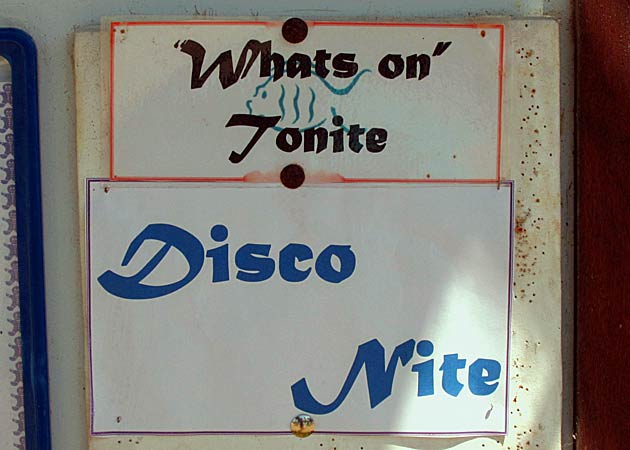Evening activity: guess what… its disco night again! Surprise!… there’s not one person on the dance floor, again… BAM!