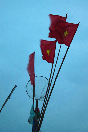 Flags in dawn breeze, near Hoi An.