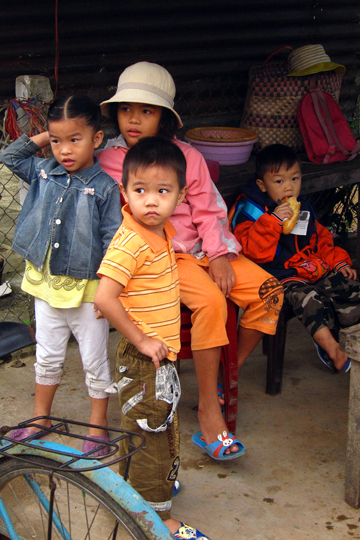 Shy kids, fishing village near Hoi An.