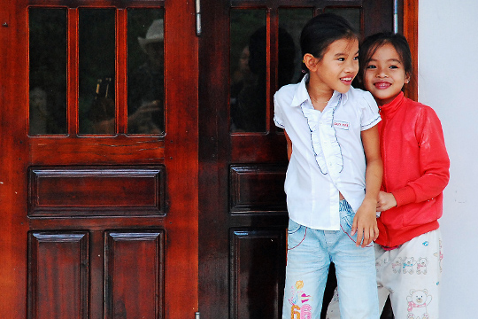 Two shy girls, fishing village near Hoi An.