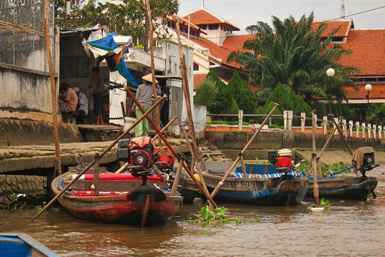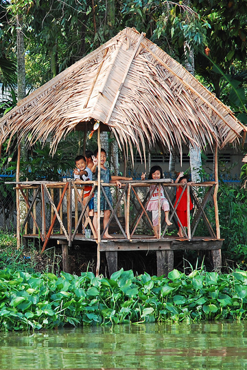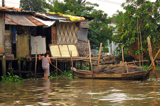 Stilt-houses on the shores of the Mekong near Can Tho.