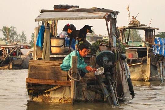 Eron’s new hat from the Cai Rang Floating Market near Can Tho.