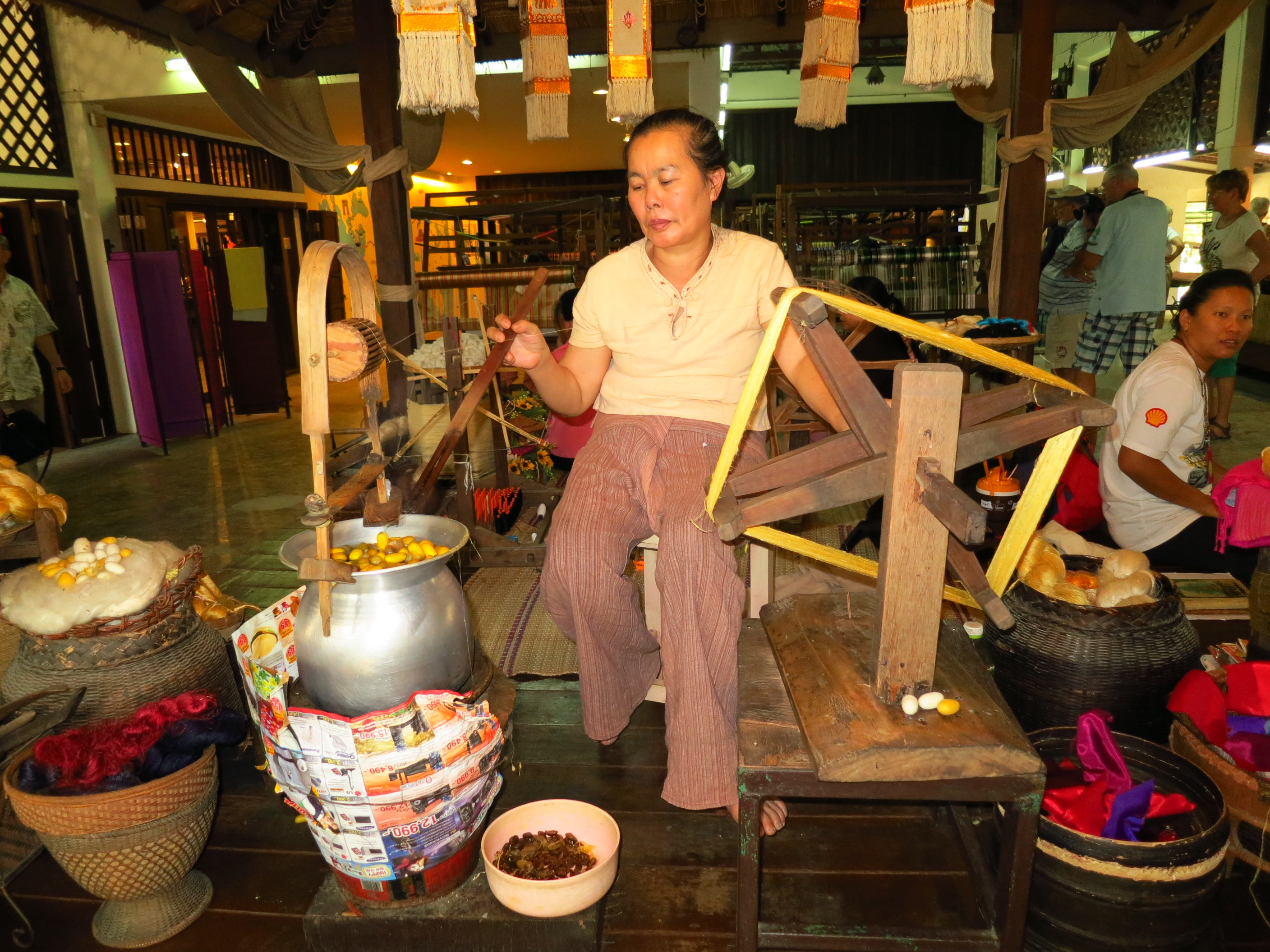 At a silk factory, we learned that it takes the fibre of fifty (50) silk-worm cocoons to make a single silk thread.
