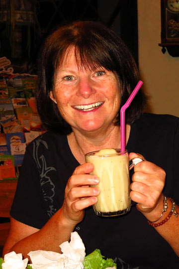 That evening, Eron and I met up with Rhonda for dinner. Eron found an interesting sounding place to try; the Andaman Kitchen (http://www.tripadvisor.com/Restaurant_Review-g293917-d4173642-Reviews-Andaman_Kitchen_Chiang_Mai-Chiang_Mai.html). We got a little lost trying to find it but it definitely was worth the effort. They featured authentic northern Thai specialties: YUM! The waiter was kind enough to warn us about the power of Thai spices; 0 equals “not spicy”, 3-4 was “good for most visitors”, 7-8 was considered “Thai-hot”, and 10 “you (visitors) cannot eat that”. Following his advise, Rhonda ordered a mild “3” Spicy Glass Noodle Salad. Needless to say, after a few bites; Rhonda had drank all her water, was fanning her mouth, and was desperately reaching for anything to quench the flames enveloping her mouth… much to our (and the rest of the restaurant’s) amusement. Rescue came in the form of a banana shake.