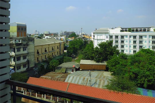 To get to Bangkok, Tony’s staff suggested taking the mini-bus service that had a depot conveniently located just at the end of the block. So, we shlupped our packs and bags down the block and purchased 3 tickets to Bangkok; 180 Baht – 60 Baht for Eron, 60 Baht for me, and 60 Baht for our luggage (because the bags took up one whole seat). In we piled – all the way to the very rear row of a 16 seat (15 passengers and 1 driver) mini-bus. And off we went; then one more stop to stuff two more passengers in – which made 14 plus our luggage and it was one helluva full bus. Between the 15 people in the bus and the midday sun outside, the air-con was slowly losing the battle… so, I did the only thing possible; I fell asleep… or passed out(?).