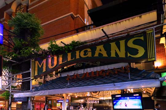Since we were in Bangkok and our hotel was only a few blocks off of it, we decided to visit the infamous Khao San Road (http://en.wikipedia.org/wiki/Khao_San_Road) that evening. Everyone has probably heard of the stories of legions of scantily-clad “come-on girls”, the anything-goes atmosphere, loud music, neon lights, and not-to-be-denied hungry-for-Farang Lady-boys. But the reality is, somewhat disappointingly, much tamer than that. We’re not sure whether it is the season or it’s just that the area has evolved (and the seedy aspects have migrated elsewhere in the city) but, at worst, we found things to be generally quite “PG rated”. In fact, the numbers of young party-hearty backpackers were mostly over-shadowed by the presence of large numbers of flash-packers, 30’s and up tourists, retirees-on-adventure, and families with toddlers in tow (note: we were later informed that the ambiance on the strip changes after midnight and some of it’s seedy under-belly manages to ooze through the thin veneer of civility). The strip is only a couple of blocks long but does branch off into a maze of side-soi’s. It’s interesting to note that on the main strip, there is an Irish pub anchoring either end of the road.