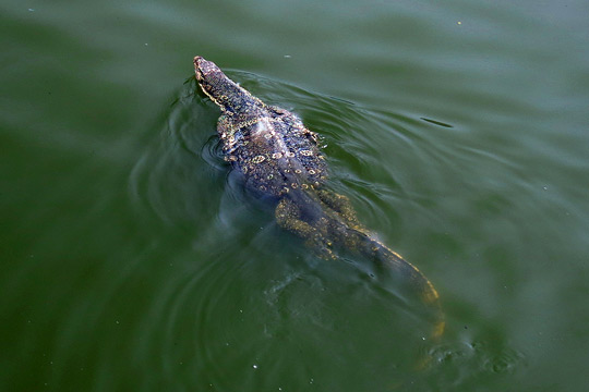 Their behaviour was not made clear to us until we went down to the hotel’s cafe for breakfast; there was something much larger on the hunt in the canal… a Komodo Dragon (http://en.wikipedia.org/wiki/Komodo_dragon) or other type of Monitor Lizard (http://en.wikipedia.org/wiki/Monitor_lizard). This one was approximately 8 feet long.