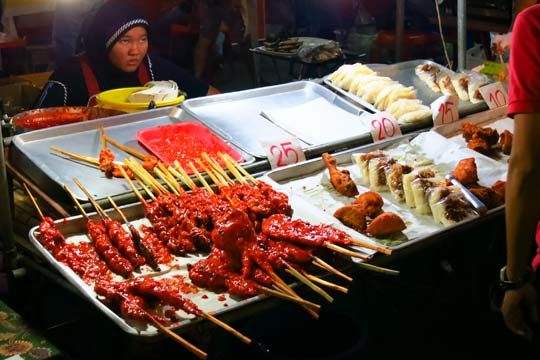 A short-hop flight later and we’re in Krabi (http://en.wikipedia.org/wiki/Krabi,_Thailand). We planned to stay here for two nights; the first of which will be at the Orange Tree House (http://www.tripadvisor.com/Hotel_Review-g297927-d2032255-Reviews-Orange_Tree_House-Krabi_Town_Krabi_Province.html). A quick tuk-tuk ride took us there… to find the parking lot in front of the hotel filled with people setting up for their Sunday Evening Walking Market.