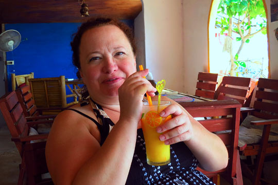 There’s a little restaurant/bar at just where the road meets the beach. So, we stopped there for lunch. The food was some of the least recommendable we’ve had in Thailand but, we couldn’t beat the view or their choice of tunes… just as we got our drinks, they played a couple of Hank Williams Sr country-songs and followed them with a, “vapour-locked in the 70’s” music-mix.