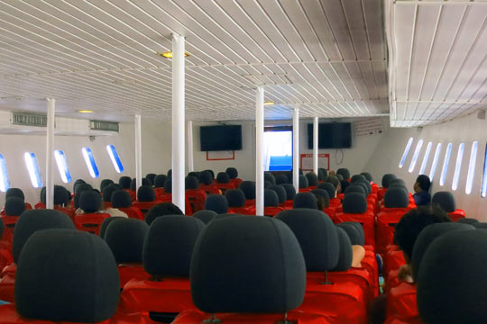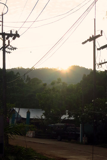 Well, 7:30 AM had come and gone and no taxi from the ferry company. The gentleman from the resort tried calling them but no answer. It gets to 7:45 AM and still no taxi. He tells us he wants to drive us himself but can’t because his wife isn’t here yet to look after the reception. But he tries to call for a taxi or tuk-tuk for… no answers from his calls. Now, 7:50 AM, he gets through to a tuk-tuk driver who agrees to come get us. Shortly afterward, he manages to get someone from the ferry company on the phone. They deny ever knowing about our 7:30 AM pick-up but they do agree to hold the ferry for us.