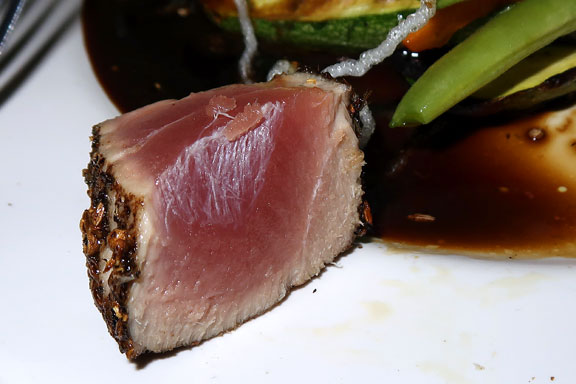 The tuna was perfectly pan-seared with a pronounced crust and the desired rare centre.