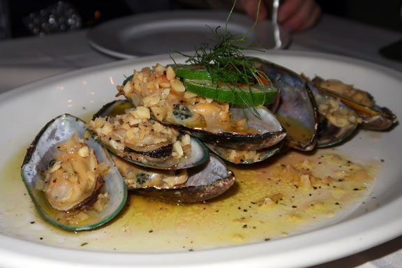 For the appetizer, we chose to try the Mussels in Garlic and Butter. The mussels were absolutely HUGE; they looked to be the size of oysters on the half-shell. Because of their size, we dove into them with some trepidation; we both expressed our hope that they weren’t “chewy”. Well, we shouldn’t have been concerned. They were delicious with a firm but not overly chewy mouth-feel and drenched with garlicy-buttery goodness. And their bread was perfect for dipping into the garlic and butter mixture.