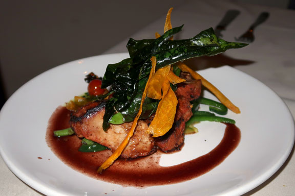 For my entrée, I went with one of my favourites from our April visits; the Agave-Glazed Pork Tenderloin. The pork comes nestled on top of grilled vegetables and is accompanied by an Ancho Chili Red Wine Reduction. As expected, the vegetables and the pork were cooked to perfection. However, this evening, the reduction was somewhat lacking. Both in quantity (there just quite enough) and in intensity of flavour; the sauce was not reduced sufficiently to bring out the richness I remembered from April. It was not “great”, but still was a very good dish.